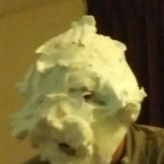 In this scene, Rebecca is back for a revenge session on The Photographer! She turns the tables, and asks very difficult trivia questions. For each incorrect answer, The Photographer gets pied or slimed! She uses several pies, several buckets of slime, chocolate syrup and 120 raw eggs until The Photographer is covered head to toe!